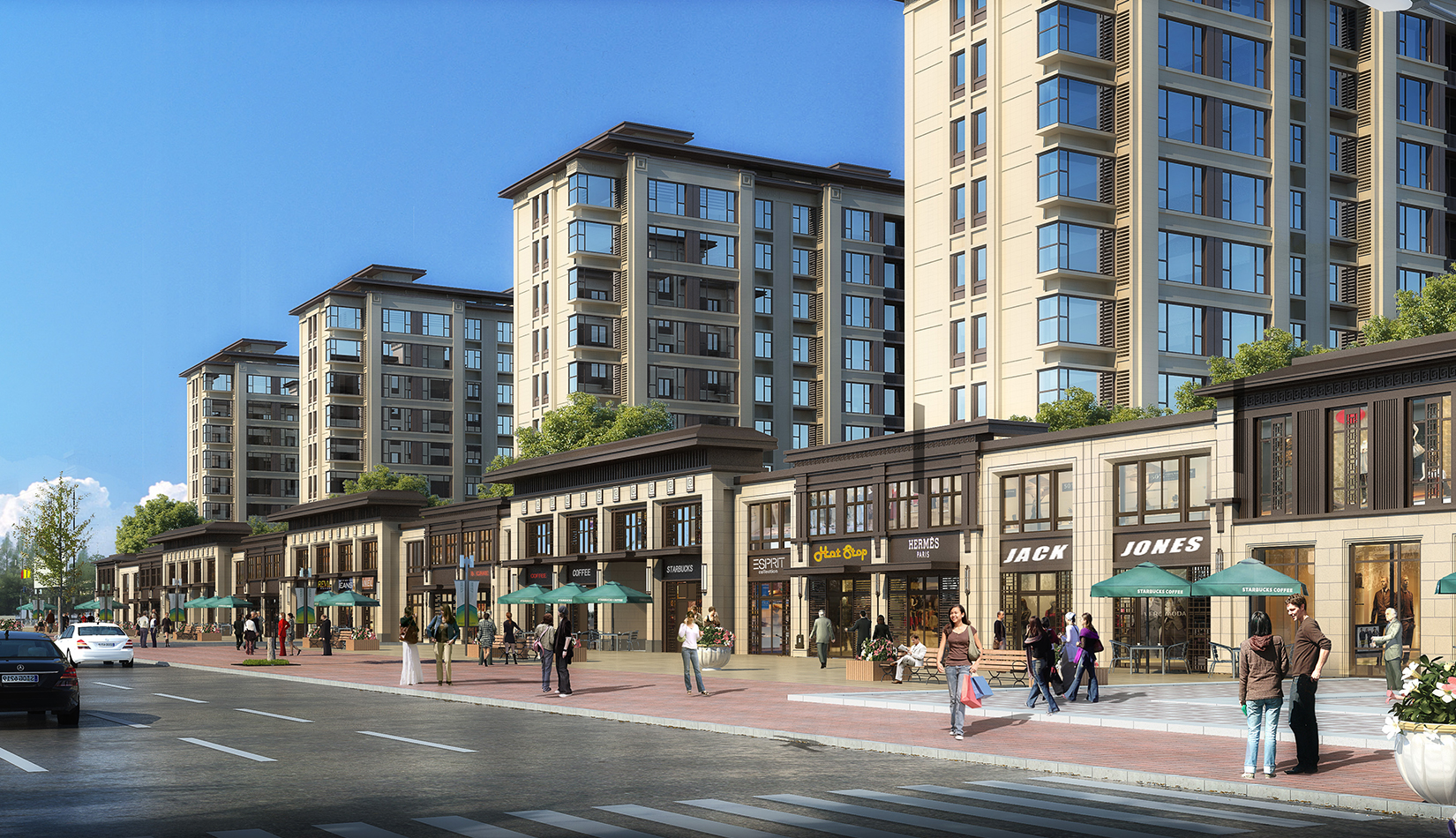 通過對(duì)基地場(chǎng)地價(jià)值的分析,綜合考慮容積率、建筑密度及航空限高等問題,以小高層住宅、花園洋房、疊拼別墅結(jié)合考慮規(guī)劃布局。景觀主要應(yīng)以內(nèi)部打造為主。建筑布局外高內(nèi)低,將多層產(chǎn)品放在中間較好的位置,同時(shí)形成建筑高度向中心景觀帶疊落的空間感覺,最大化利用中心景觀帶。