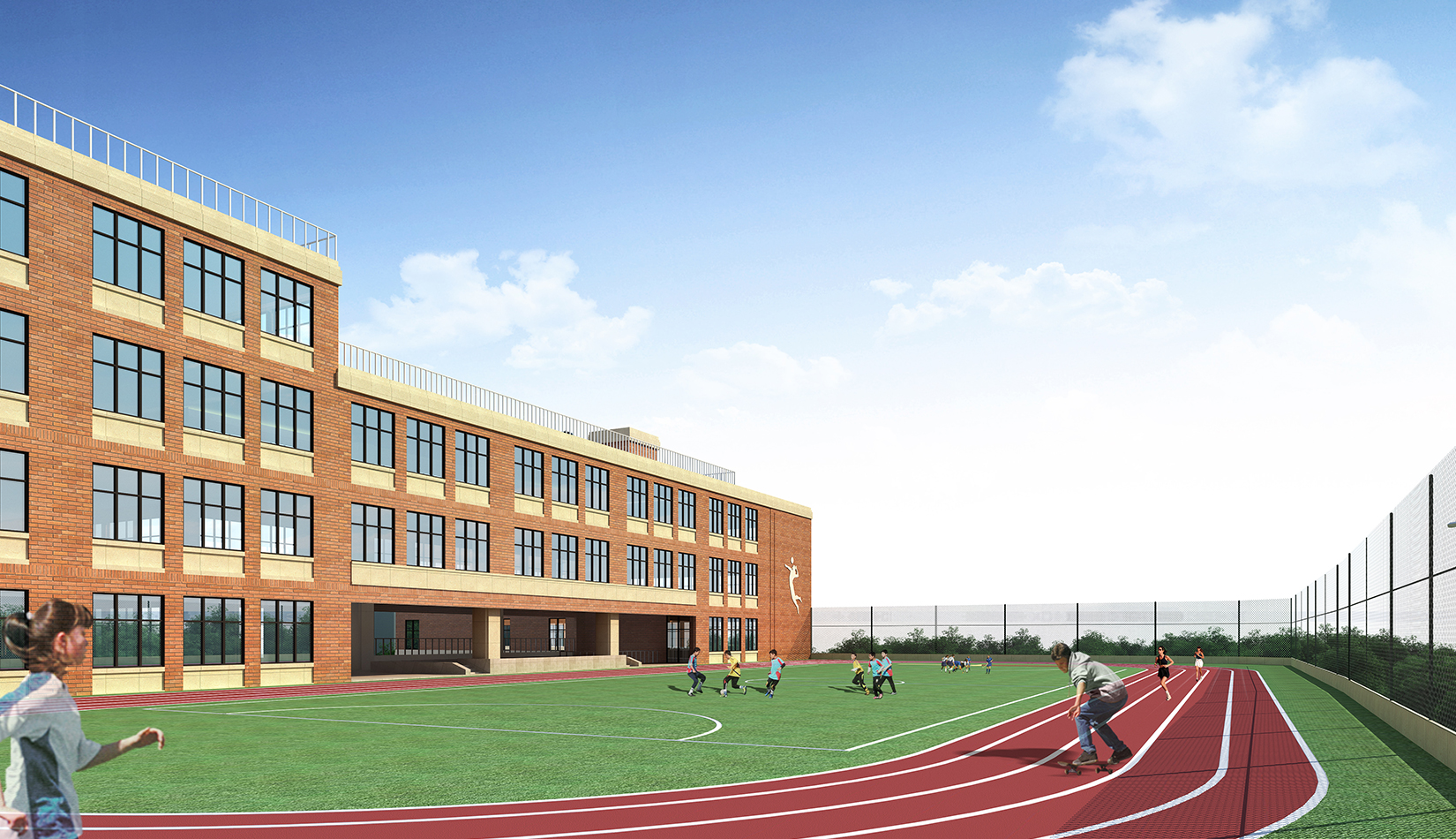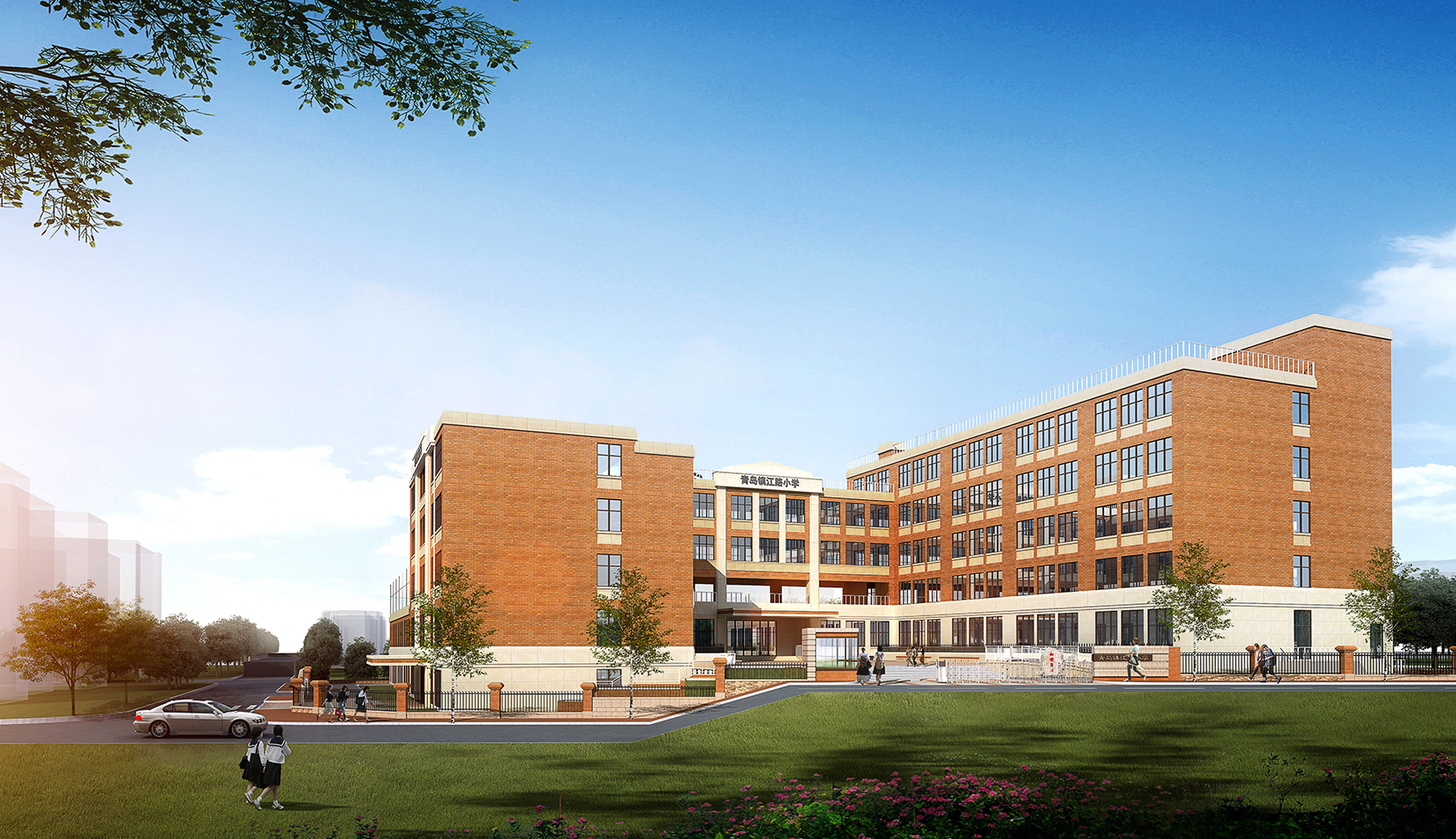 該項目的設計延續(xù)區(qū)域肌理,與區(qū)域城市肌理相融合,提高區(qū)域環(huán)境。立面設計考慮市南區(qū)及鎮(zhèn)江路原有學校風格,采用學院派建筑風格,塑造古典人文氛圍,校園墻體通過磚的變化設計文化墻,將文化傳承與精神傳承融合在建筑之中。根據(jù)地勢和日照進行功能布局排列,下沉庭院、連廊和架空設計的鄰近操場的校園環(huán)境設計,一方面塑造了豐富多彩的校園環(huán)境,另一方面充分保證了室內(nèi)環(huán)境的采光,讓孩子們更多地享受陽光。