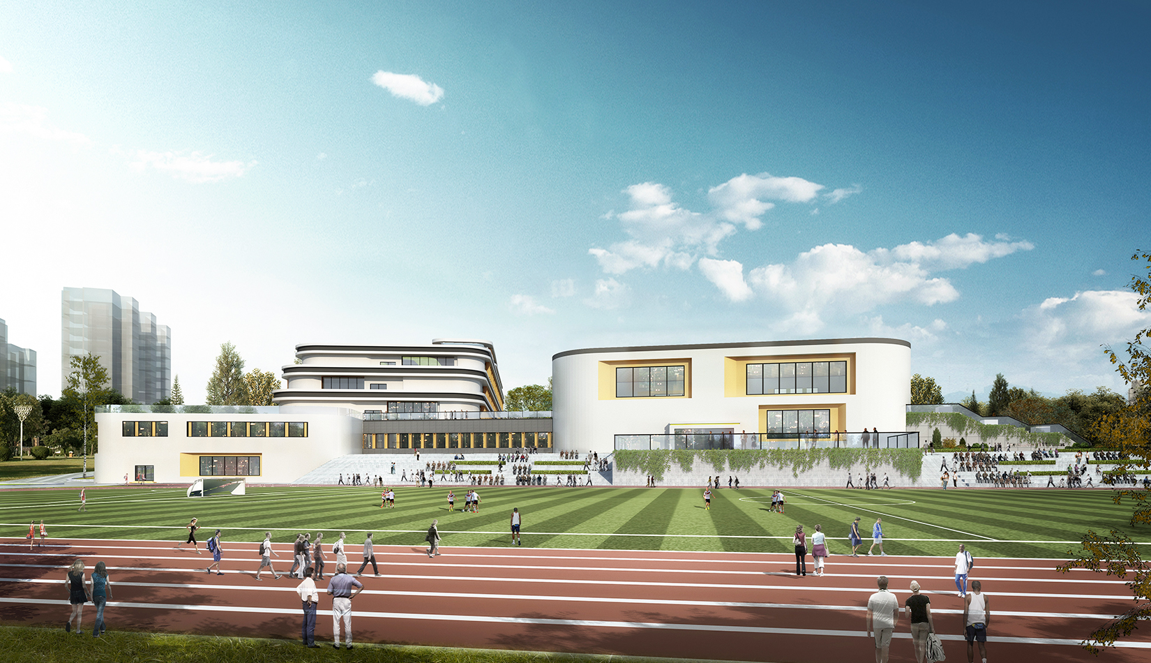 功能分區(qū)遵循“教學(xué)—觀演—運(yùn)動(dòng)”三點(diǎn)式布局原則,各功能之間聯(lián)系緊密,流線合理清晰。不再鋪設(shè)走廊,將連接性空間設(shè)計(jì)成“學(xué)習(xí)小徑”,從而創(chuàng)造更實(shí)用的空間以及一個(gè)更有效的建筑,同時(shí)營造出一種“學(xué)習(xí)無處不在”的氛圍。