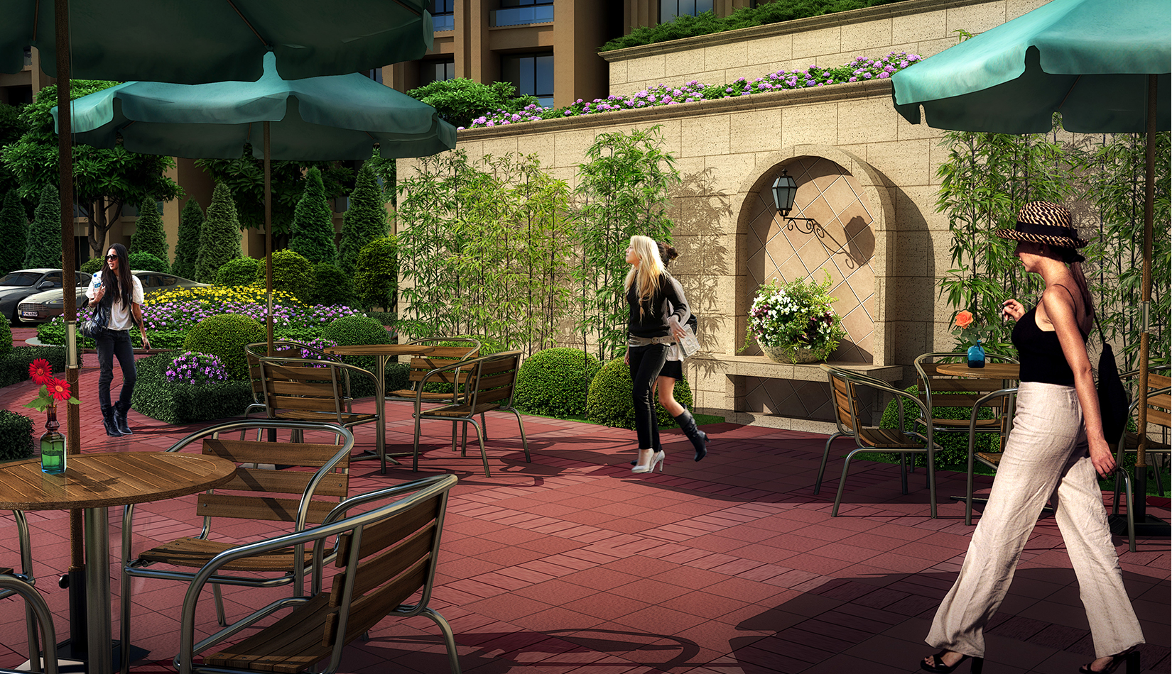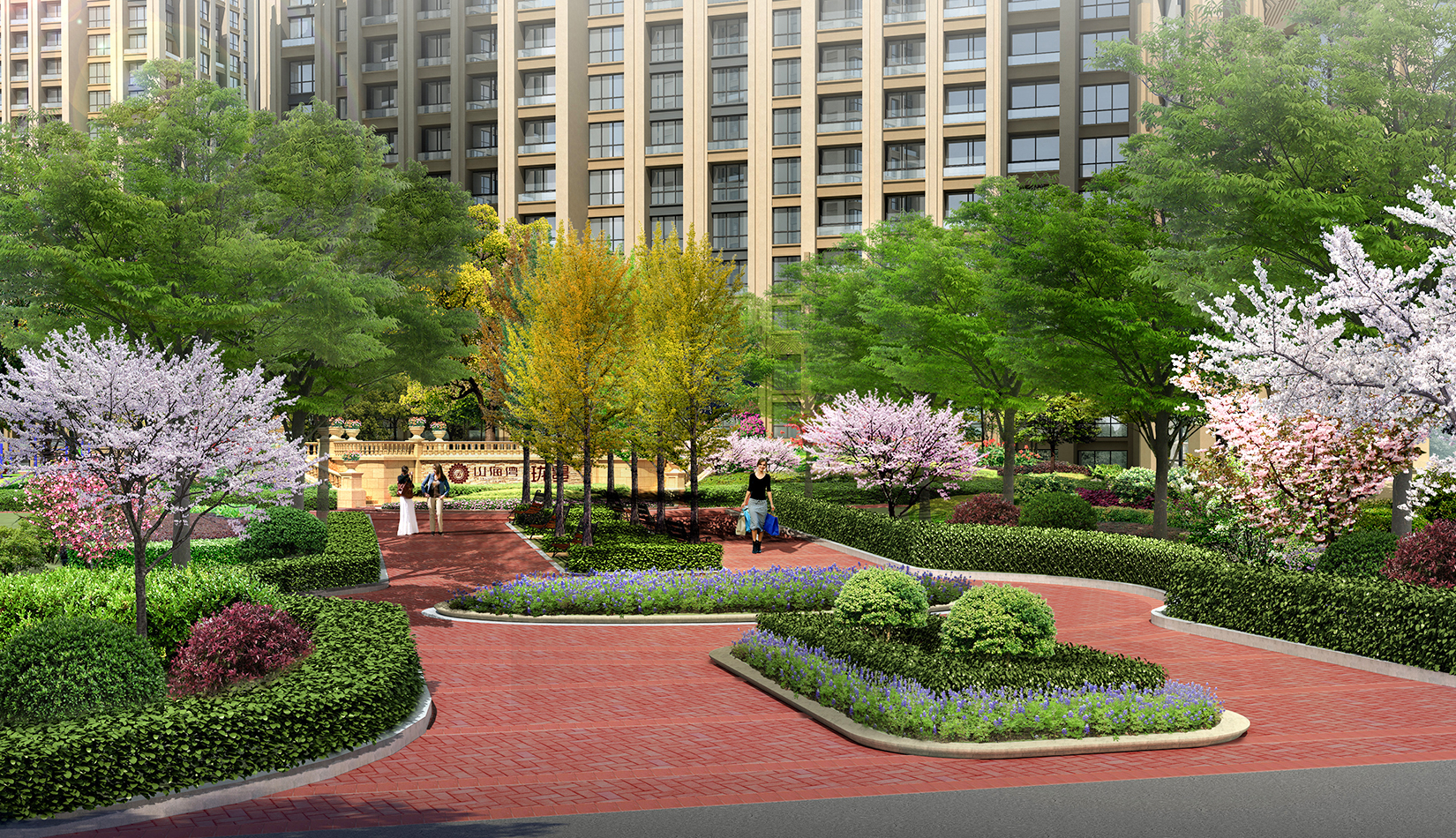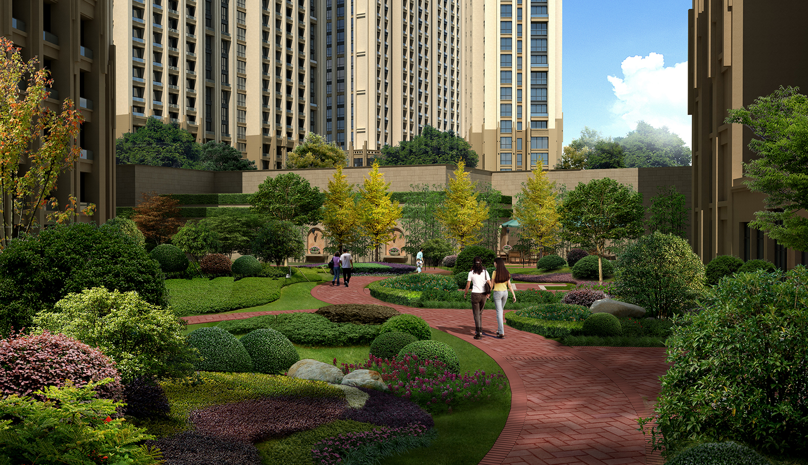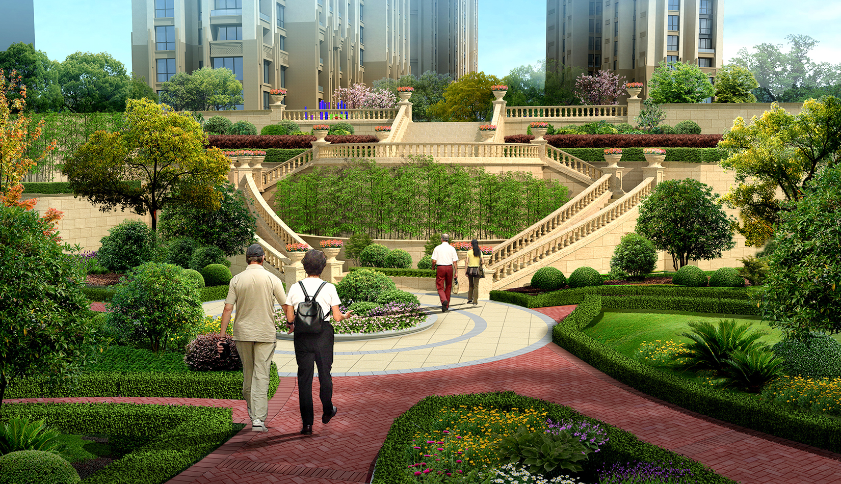 通過(guò)“主題式功能景觀區(qū)”的設(shè)計(jì)手法,提煉法式景觀中的經(jīng)典要素,進(jìn)行合理的空間組織,形成以人為本、和諧有序、經(jīng)濟(jì)優(yōu)美、功能齊全的居住區(qū)園林景觀系統(tǒng),使戶戶在家中就都能看見(jiàn)并享受具有尊貴、典雅、悠閑特色的住宅區(qū)景觀。
