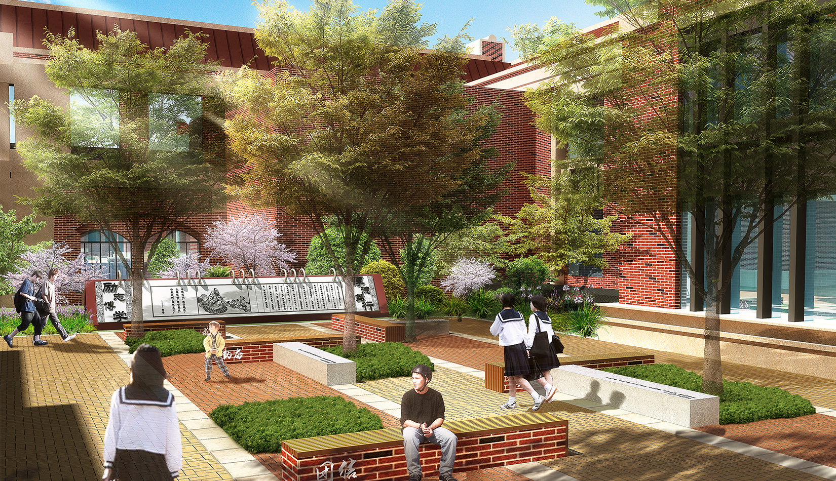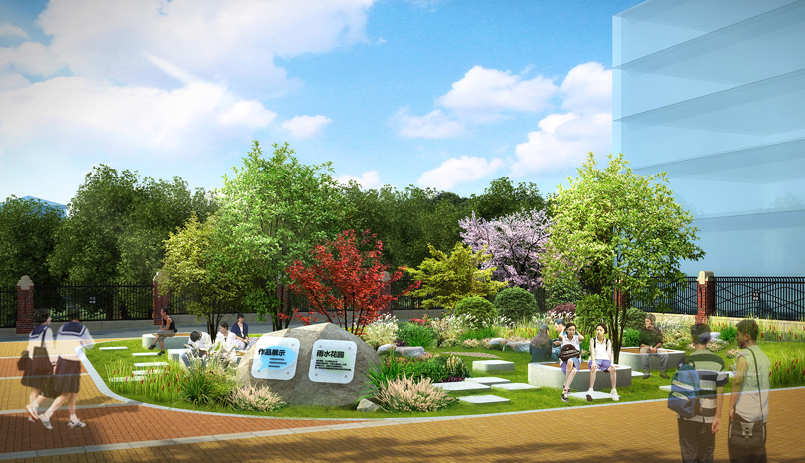 創(chuàng)建優(yōu)良的校園文化環(huán)境、營造充滿活力的室外景觀,給予學(xué)生豐富的活動空間。