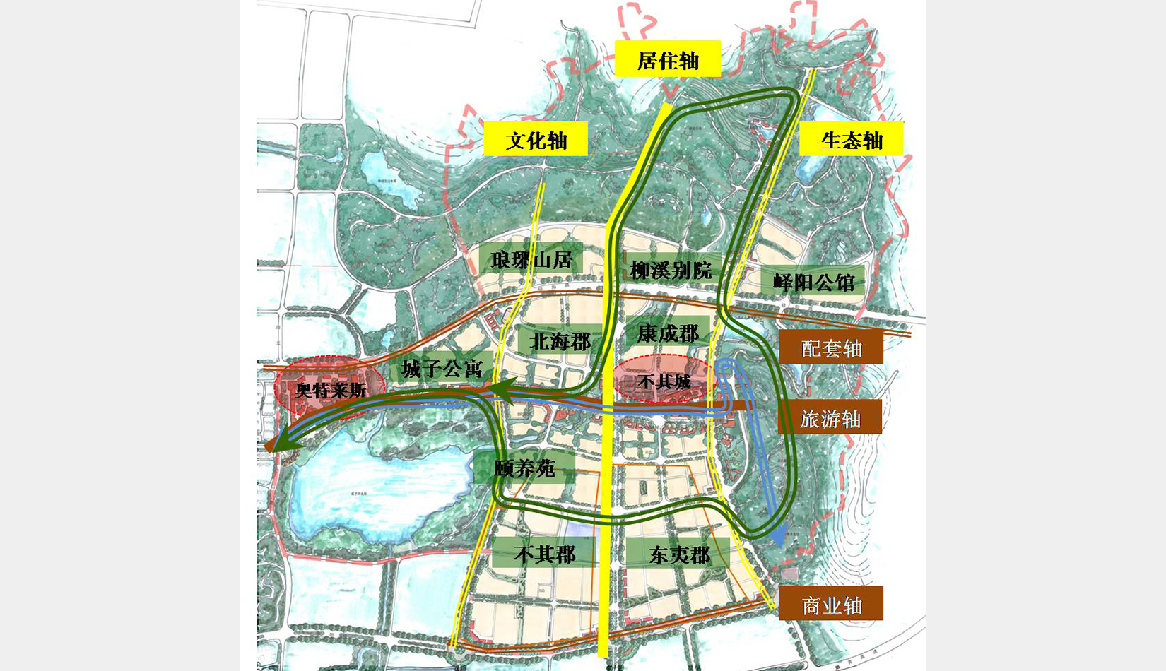 同時土地開發(fā)過程中,在注重不其文化旅游資源的整合與產(chǎn)業(yè)培育的基礎(chǔ)上,適當(dāng)發(fā)展樓宇經(jīng)濟(jì),開發(fā)住宅項(xiàng)目,打造未來生態(tài)宜居的理想生活城。